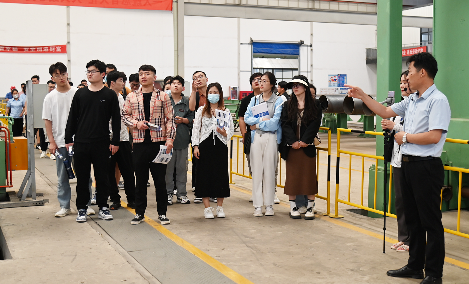 ? ? ? ?繼而,千萬PPH生產線上與旋螺焊接鋼管生產線上參與環境在參觀,管工廠副總裁為安丘市院校的中學生們簡略價紹了成品的施工工藝程序。